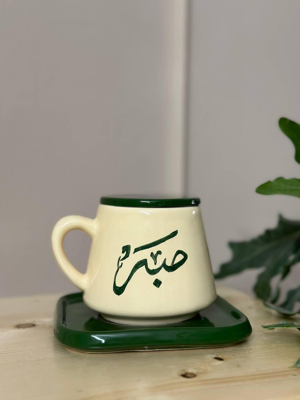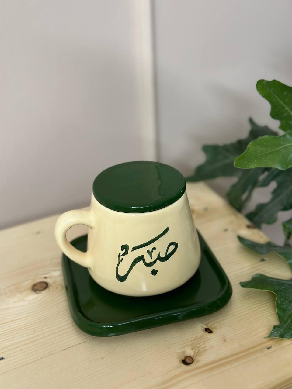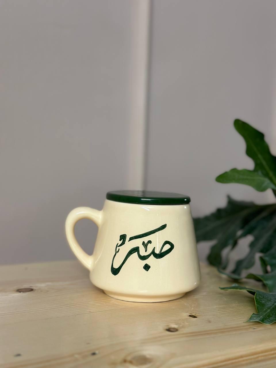 ماگ سرامیکی کالیگرافی صبر، یک ماگی متفاوت با لعاب زمینه کرم ، درب سبز رنگ و ابعاد نسبتا بزرگ می باشد که واژه صبر به صورت هنرمندانه روی آن خطاطی شده است.