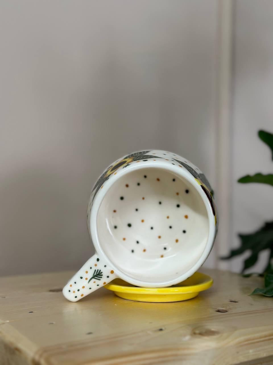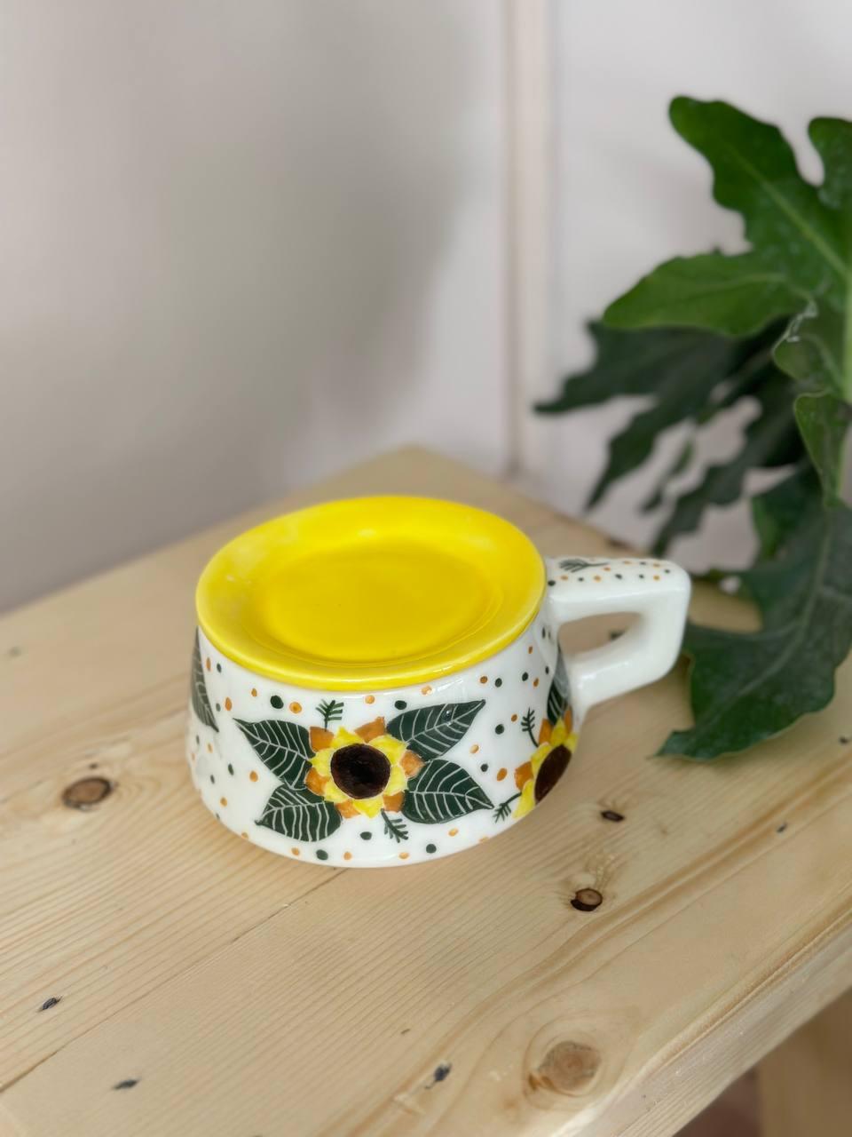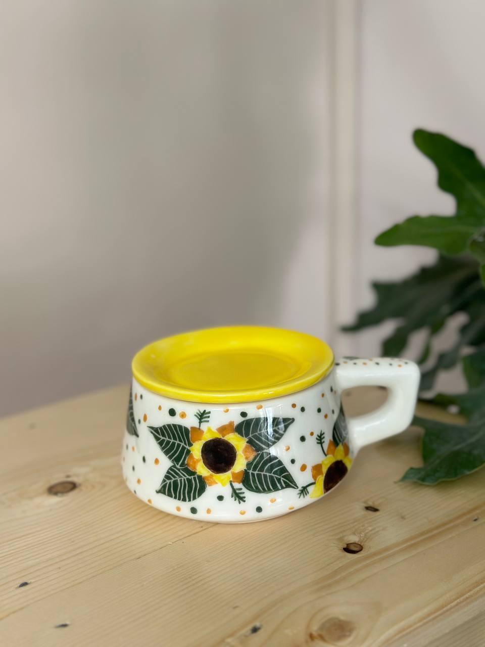 ماگ سرامیکی آفتابگردان ، با طرح گل آفتابگردان و درب زرد رنگ می باشد.این ماگ از جمله ماگ های سایز بزرگ محسوب می شود.