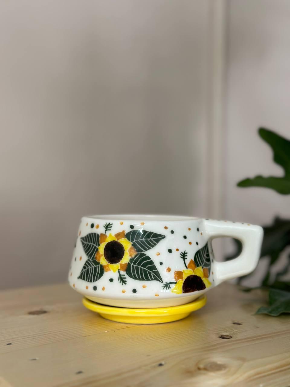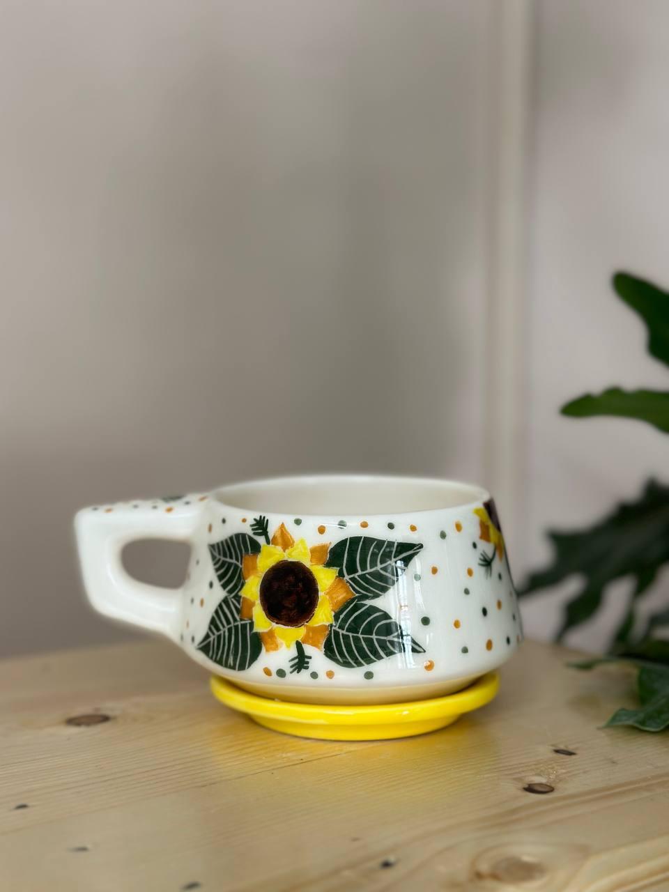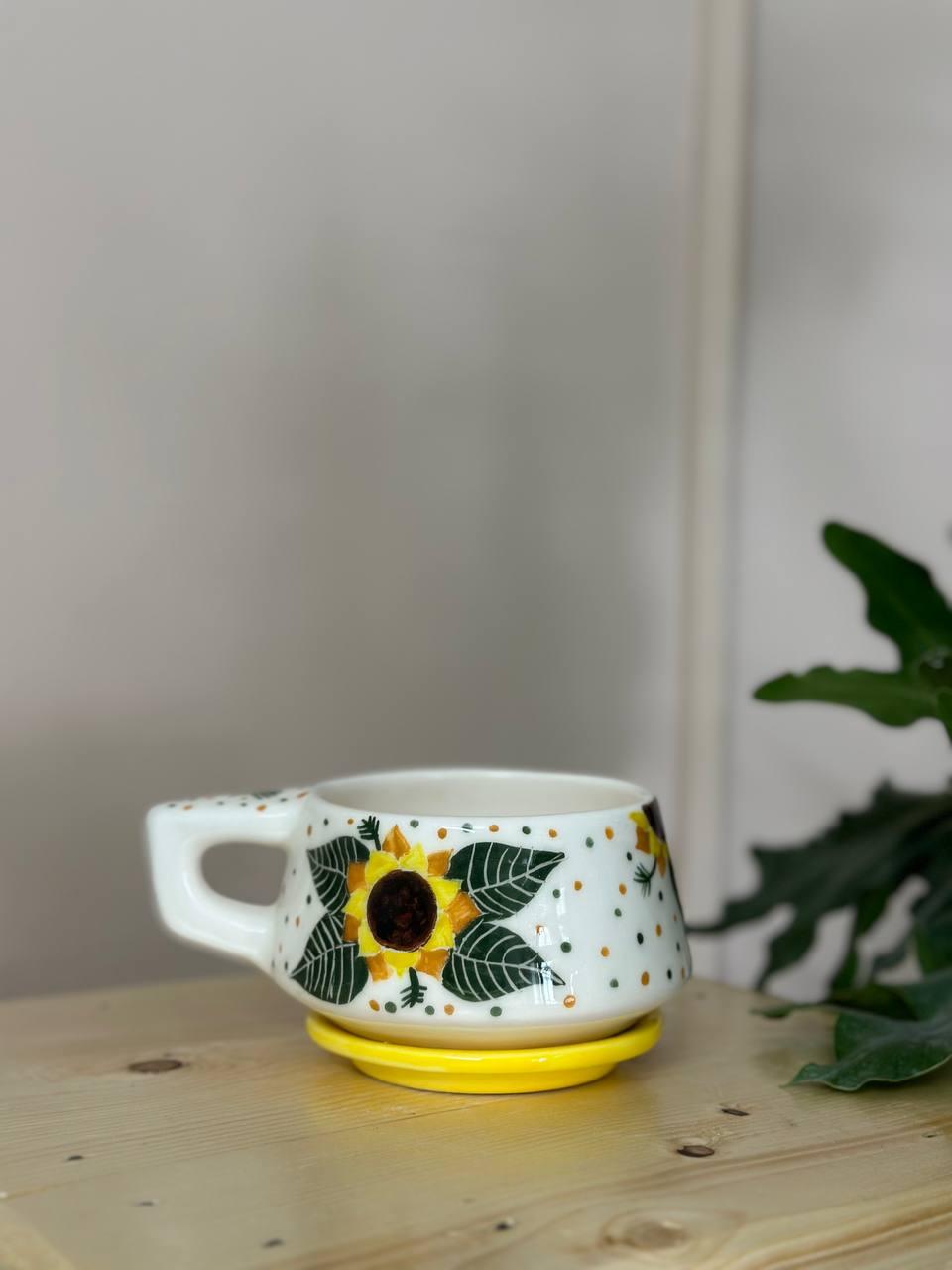 ماگ سرامیکی آفتابگردان ، با طرح گل آفتابگردان و درب زرد رنگ می باشد.این ماگ از جمله ماگ های سایز بزرگ محسوب می شود.