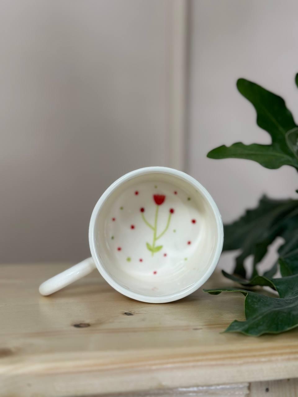 در بیرون این ماگ دایره هایی سبز رنگ به شکل توپ میشود دید و درون آن هم رنگ بدنه می باشد