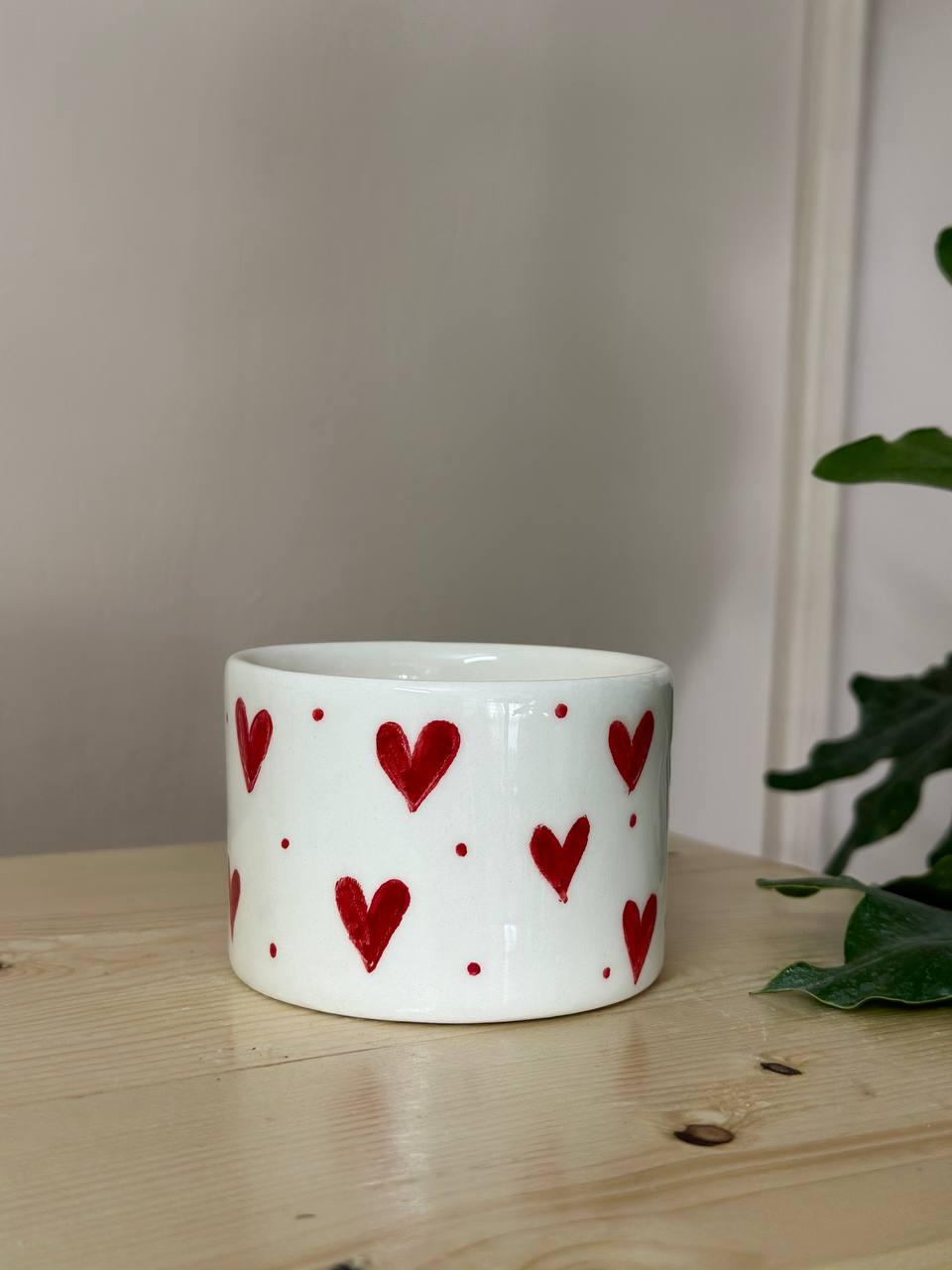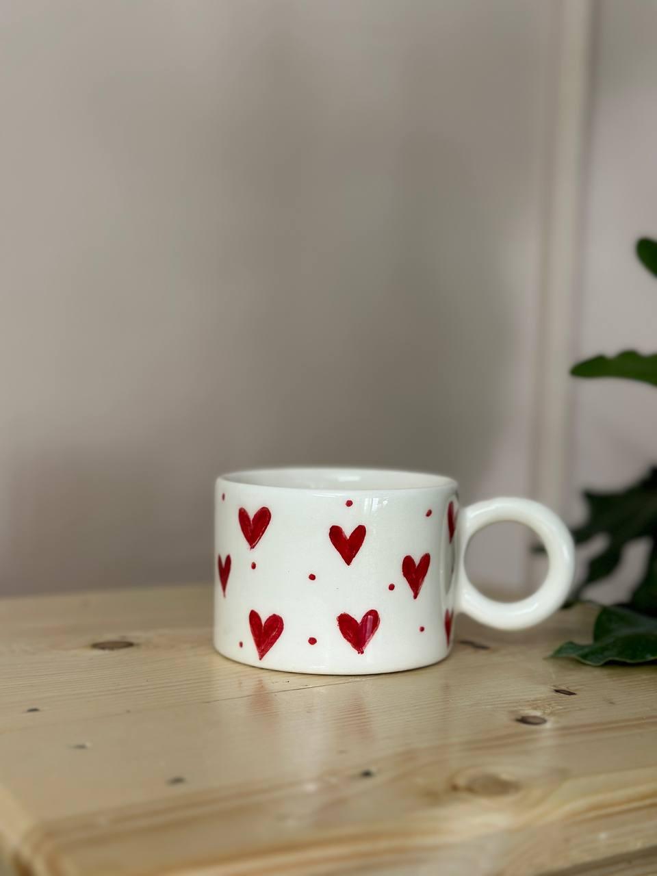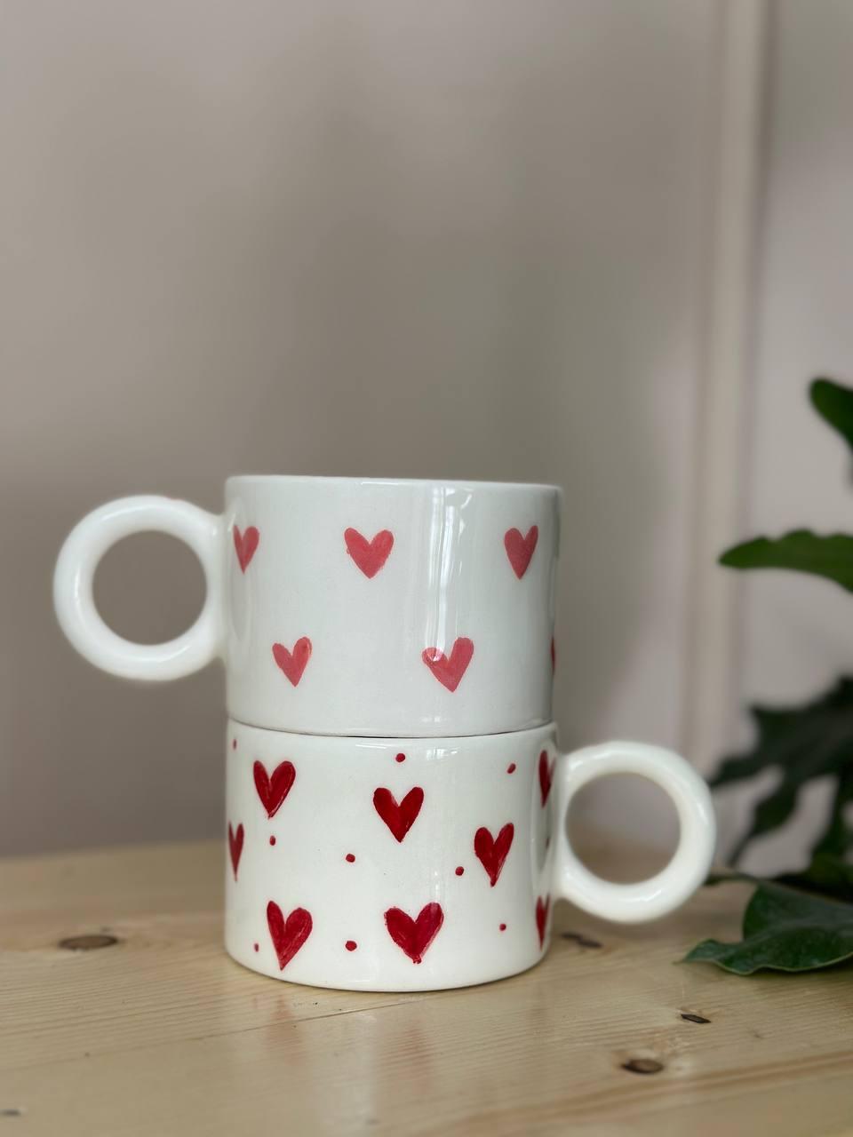 ماگ سرامیکی عشق، ماگی با بدنه سفید رنگ و طرح قلب به طور پیوسته اطراف آن و درون آن می باشد.در بدنه این ماگ ، قلب های متعددی با جزئیات و دقت بالا در مقیاس زیاد قراردارد.این ماگ از جمله ماگ های سایز متوسط محسوب می شود.داخل این ماگ تک قلبی زیبا را میتوان دید.