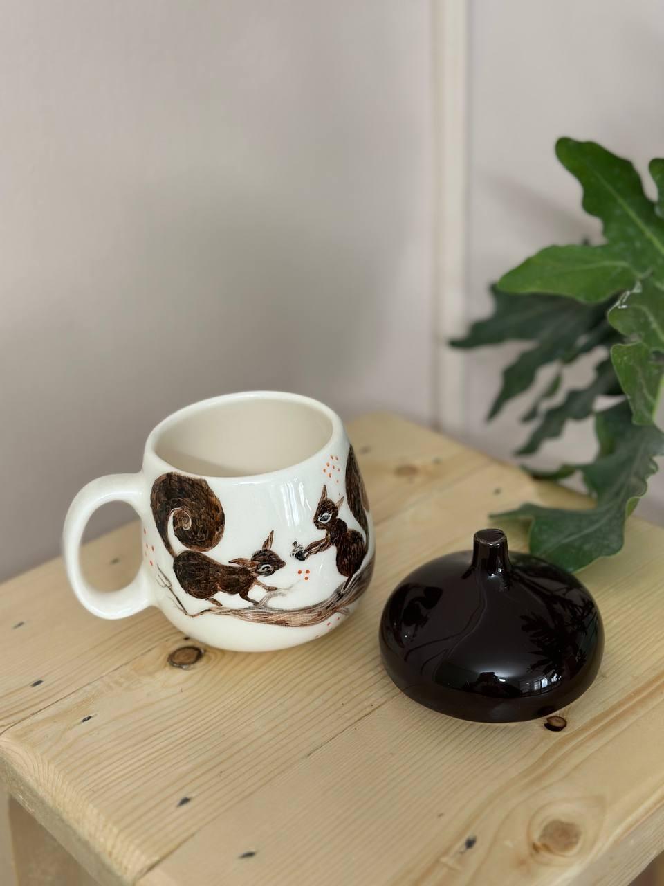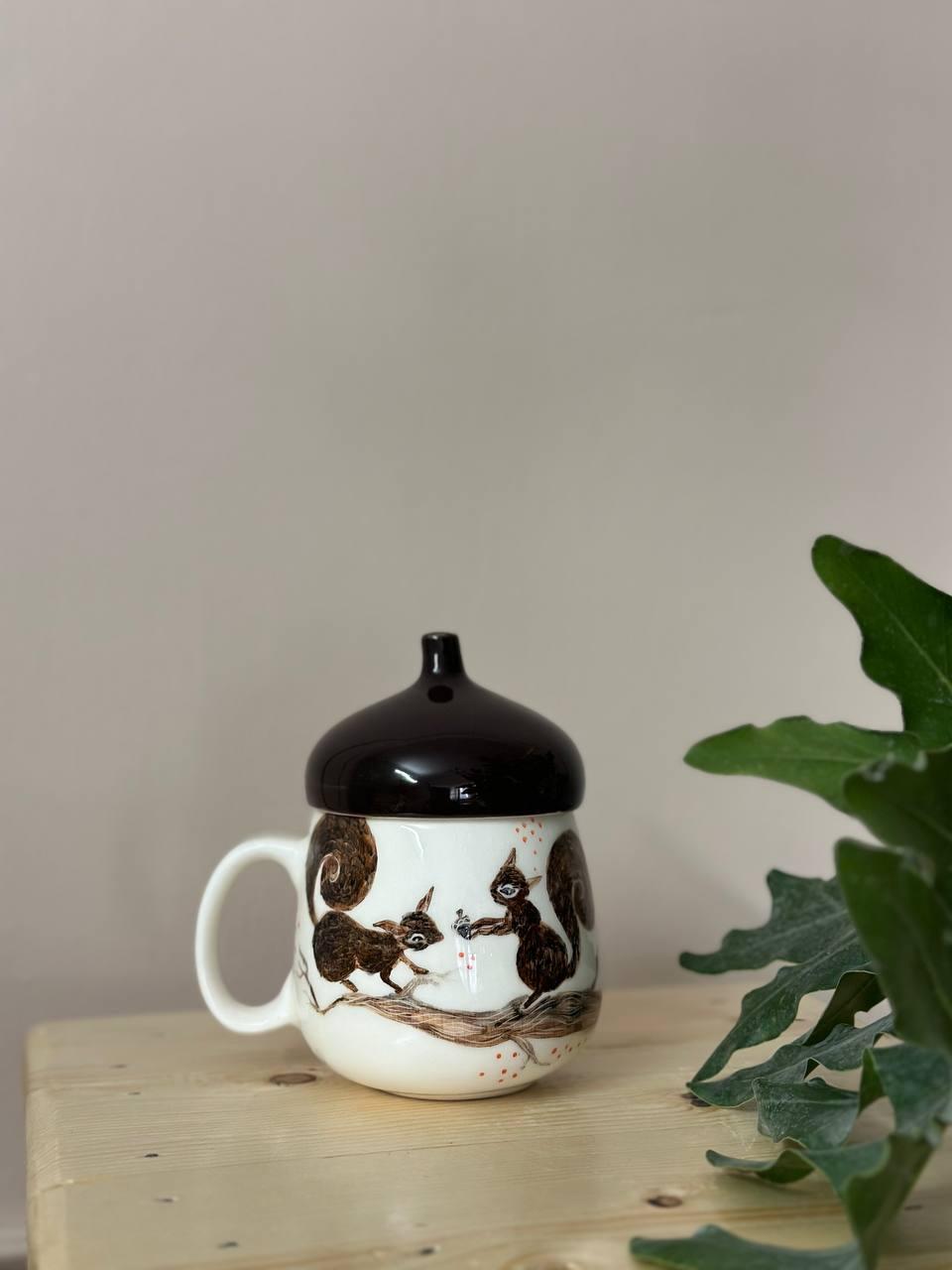 ماگ سرامیکی جنگل بلوط، ماگی با بدنه سفید رنگ و طرح هنری سنجاب و درب آن به شکل بلوط می باشد که آنرا به یکی از ماگ های پرکار و خاص تبدیل کرده است.این ماگ از جمله ماگ های سایز بزرگ محسوب می شود.داخل این ماگ تک قلبی زیبا را میتوان دید.به عبارتی میتوان به این ماگ ، ماگ سنجاب نیز گفت.