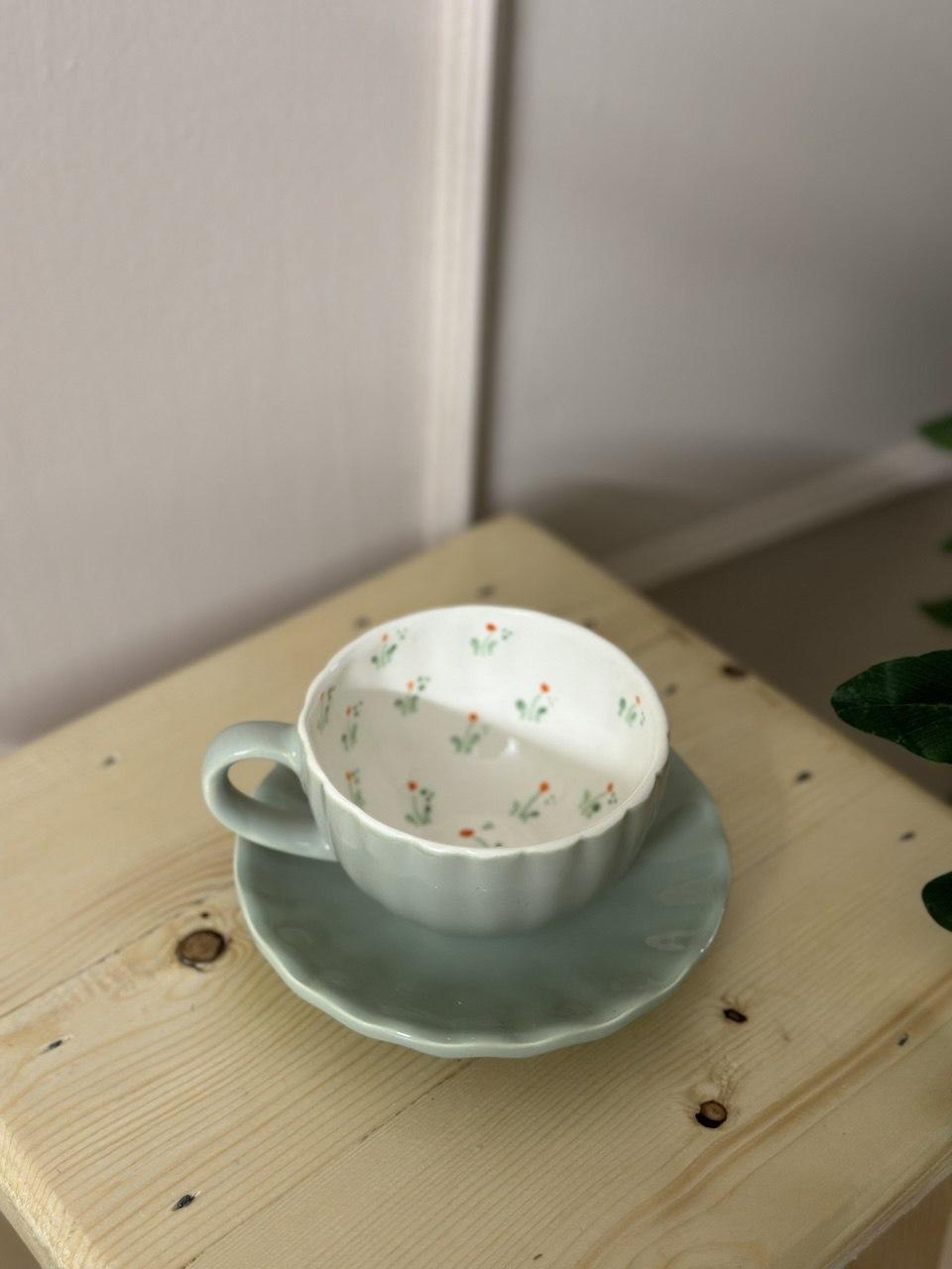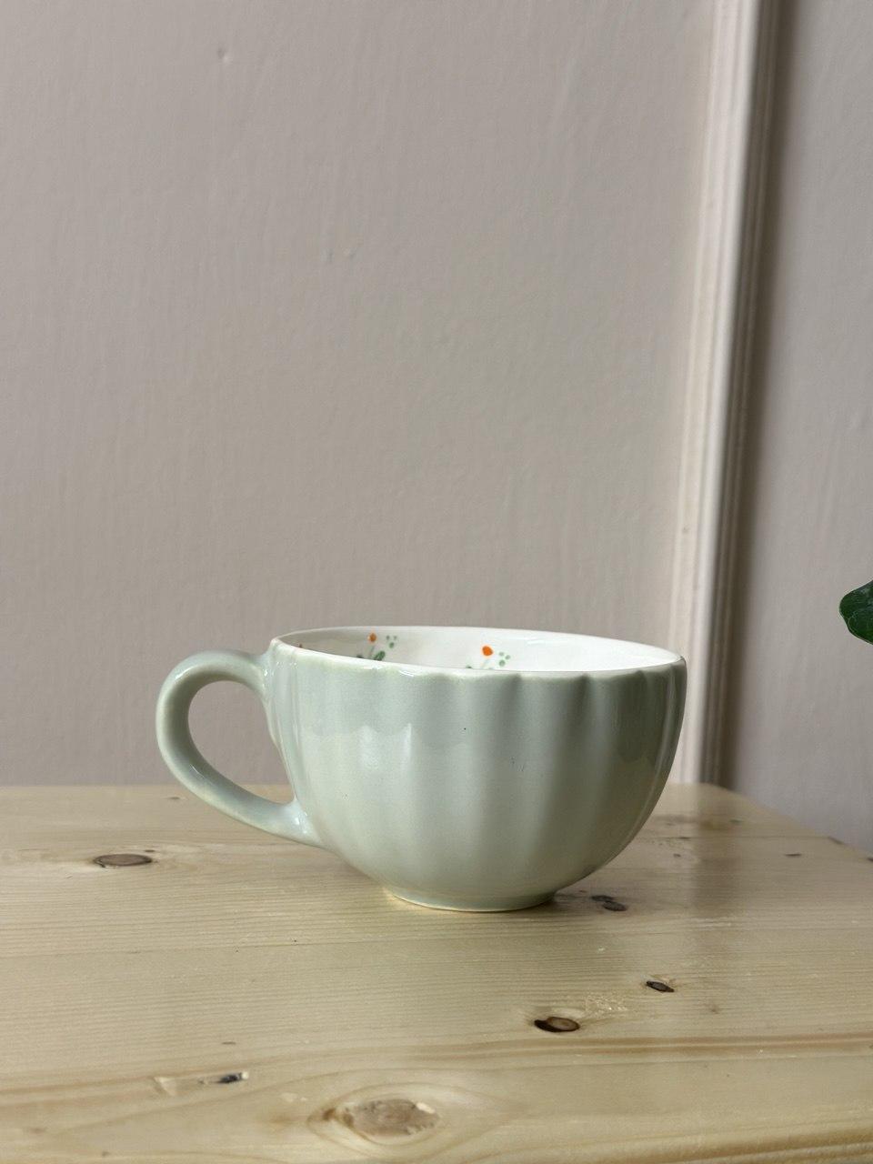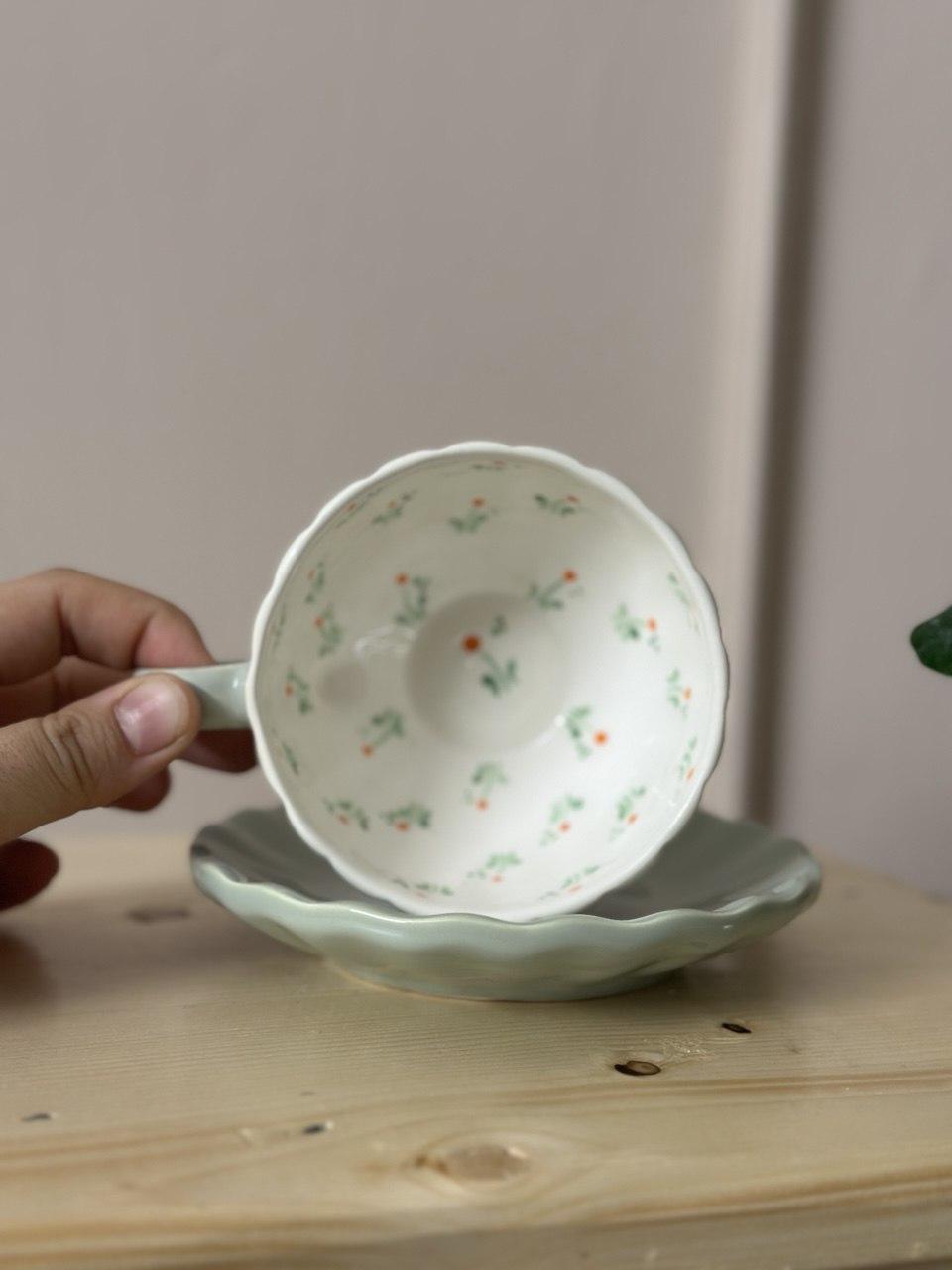 ماگ سرامیکی دست ساز و زیبا ، با طرح زیبای شکوفه های ریز و شکل ماگ از نوع صدفی ،که زیبایی منحصر به فردی به خود بخشیده است.بیرون این ماگ سبز پاستیلی رنگ و داخل آن طرح زیبای شکوفه های ریز می باشد که هنرمندانه ترسیم شده است.