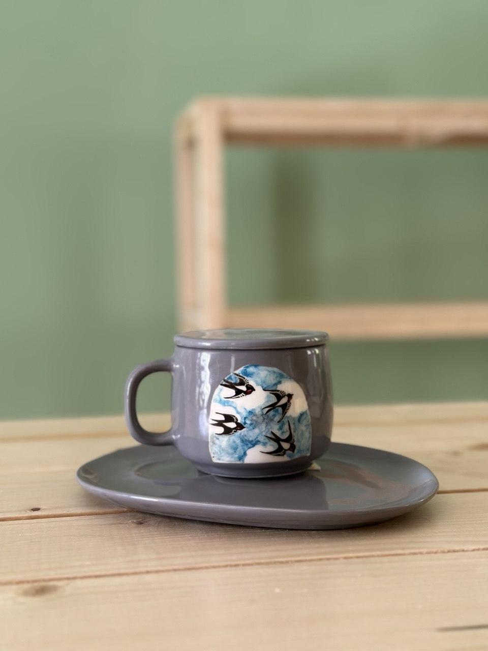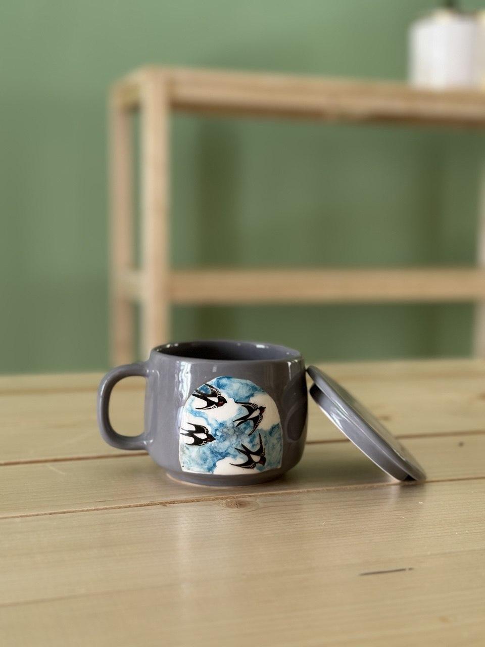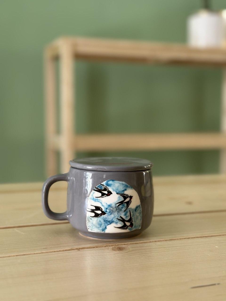 ماگ سرامیکی کوچ پرنده همراه با درب